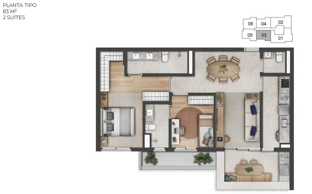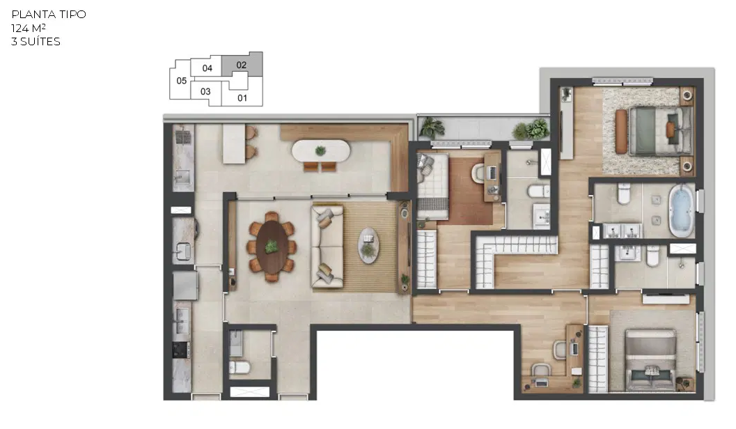 O projeto se destaca pela arquitetura contemporânea, que une sofisticação, funcionalidade e sustentabilidade, proporcionando integração com o entorno e experiências únicas de bem-estar. No 17º pavimento, os moradores encontram um espaço exclusivo de 500 m² com uma piscina que dá a sensação de flutuar a 50 metros de altura, oferecendo uma vista privilegiada da cidade.